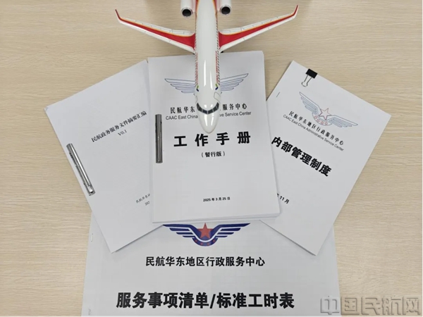 在规范化建设方面,中心全面梳理2019年以来的政务服务数据,统一统计口径,优化采集与分析流程。通过深入研究国家及民航局等41份政务服务相关文件,中心提炼形成华东民航政务服务及大厅建设要求,并据此编制《行政服务中心工作手册(2025版)》,同步修订《民航政务服务文件摘要汇编》《行政服务中心内部管理制度》及《服务事项清单/标准工时表》,为各项工作规范运行提供了系统性依据。