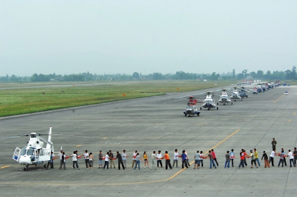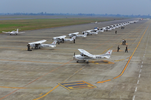 短暂的讲评结束后,数十架塞斯纳教练机依次腾空而起。