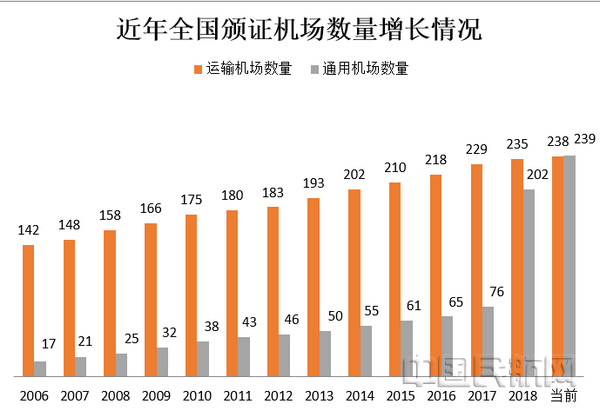 变化出现在近三年。2016年,国务院发布《关于促进通用航空业发展的指导意见》后,民航局不断深化“放管服”改革,逐步确立了“放管结合、以放为主、分类管理”的通航监管新理念。2017年,冯正霖局长签署发布了《通用机场分类管理办法》,开启了通航分类管理改革的先河。至此,通用机场迎来了适宜的政策环境,颁证数量呈爆发性增长,可谓政策效力凸显。