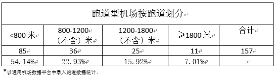 表2 全国颁证跑道型通用机场按照跑道划分统计表