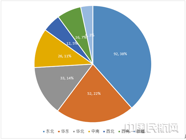 年初以来,颁证通用机场数量净增37个,增幅趋于平缓。值得一提的是华东地区在2019年仍保持较快增长率,从年初39个稳步增至52个机场,以每季度新增4.3个的速度实现总数13个,稳居2019年前三季度地区增长第一。与上一季度相比,地区排名虽然变化不大,但华东、华北地区增速明显。