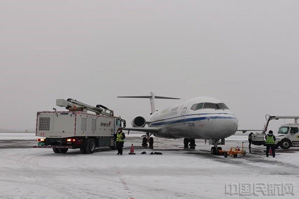 呼和浩特机场护航冬季降雪天气航班平稳运行