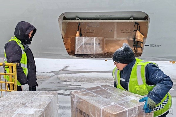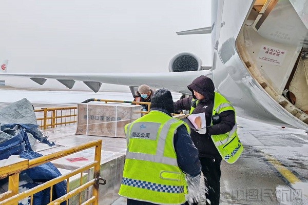 保障人员进行货物装机作业(本文图片均由呼和浩特机场提供)