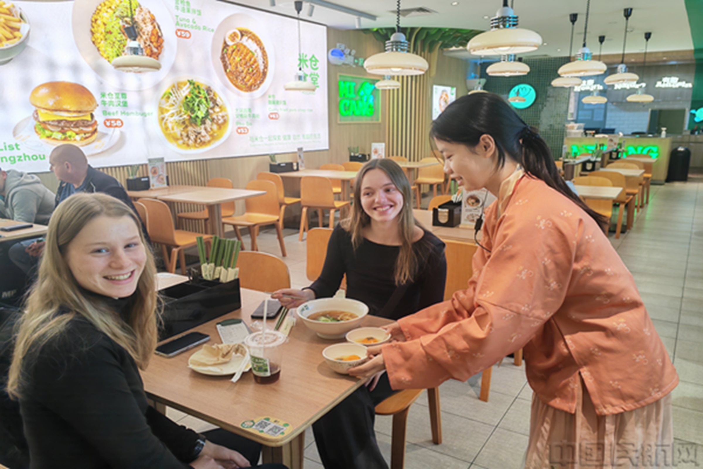 一碗汤圆,汇聚万千温情。活动现场,无论是阖家出行的家庭、相伴同行的情侣,还是独自赶路的旅人,接过香甜的汤圆时,脸上都洋溢着幸福的笑容。在二号航站楼国际区域的米仓食堂,两位首次到访中国的海外旅客,惊喜地接过汤圆,还用中文向身着宋式服饰的工作人员道上“元宵节快乐”的祝福。在即将离境回国的时刻,这份突如其来的东方年味,让她们连连感慨“又惊喜又感动”,成为此次中国之行的美好记忆。
