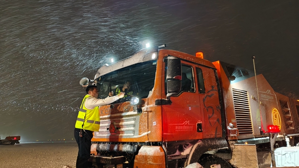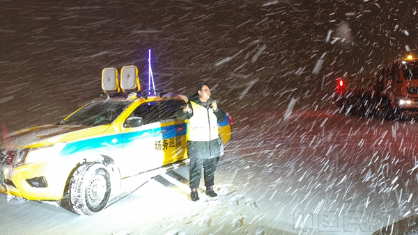 场区(能源)管理部坚持“以雪为令、循环作业、雪停即净”原则,全体作业人员顶风冒雪、连续奋战25小时,出动清雪车25辆、各类清雪设备33台、投入司机及作业人员210人次、撒播融雪剂40吨,仅用3小时就完成了场区核心区、高架桥、东西进场路等关键路段积雪清理,有效消除路面结冰隐患,全力保障机场运行安全、有序、畅通。