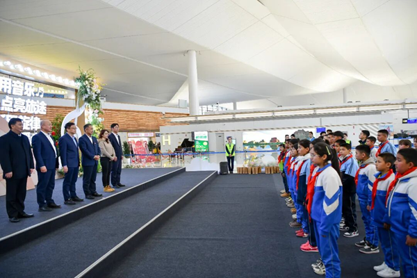 中国民航网讯:3月17日,乌鲁木齐天山国际机场航站楼内洋溢着温馨欢乐的气氛,一场以“新疆空港·赋能万方”为主题的铸牢中华民族共同体意识活动正在举行。来自于田县的优秀学子们,在老师和新疆机场集团驻村工作队员的陪伴下,第一次走出家乡、走进机场、飞上蓝天、俯瞰家乡、接触航空知识,开启了由新疆机场集团组织开展的“云端研学”之旅。