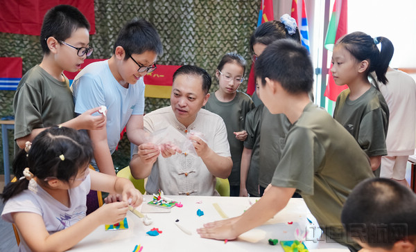 在刚健的军事训练之外,传统文化的滋养为暑托班增添了温润的底色。皮影戏的光影流转间,孩子们惊叹于非遗技艺的奇妙;博物馆专家走进东航,用生动的讲解揭开历史文物的面纱,让千年文化在孩子们眼中鲜活起来;集体绘画长卷上,他们以童真笔触勾勒出心中的祖国与东航;手工制作课上,面塑等传统技艺的体验,让孩子们在动手间感受先辈智慧。从传统艺术到历史底蕴,多元课程让民族自豪感在孩子们心中油然而生。