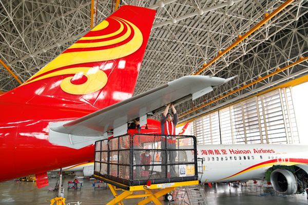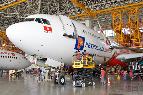 海航技术正在为越南进境飞机提供航空维修服务(本文图片均由海航提供)