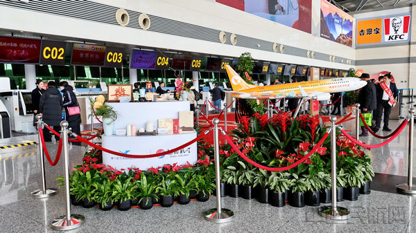 在石家庄机场C2值机岛,河北航空精心打造的燕赵特色展台引人注目,河北航空值机柜台张贴有河北11个地市特色地标的非遗剪纸图案,同时展示有蔚县剪纸、衡水内画、曲阳石雕、藁城宫灯等河北地方好物,将燕赵文化深度融入旅客春运出行保障的各个环节,营造有文化、有温度的候机环境,让旅客在旅途中邂逅浓郁的河北韵味与新春暖意。