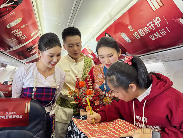 《中国民航报》、中国民航网 记者何丹 通讯员杨臻 报道:2月17日,DR5098航班平稳降落在芒市机场,这是芒市机场联合苏南瑞丽航空、德宏州委宣传部、德宏州文化和旅游局共同打造的“新春·福跃马年”非遗特色航班。此次特色航班以万米高空为载体,搭建非遗传播桥梁,为广大旅客呈现了一场独具魅力的非遗盛宴,生动诠释“有一种叫云南的生活”的深刻内涵,助力德宏文旅品牌形象提升。