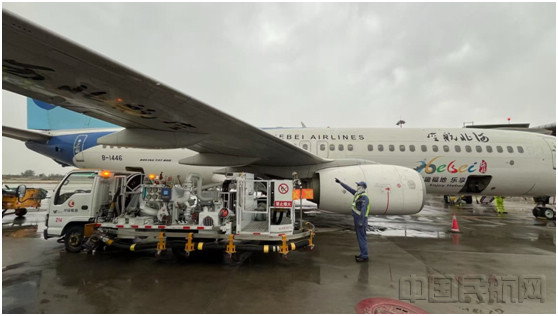 石家庄航空加油站加强对加油设备的检查维护,下好防汛“先手棋”,确保加油车等设施在极端天气下性能稳定。