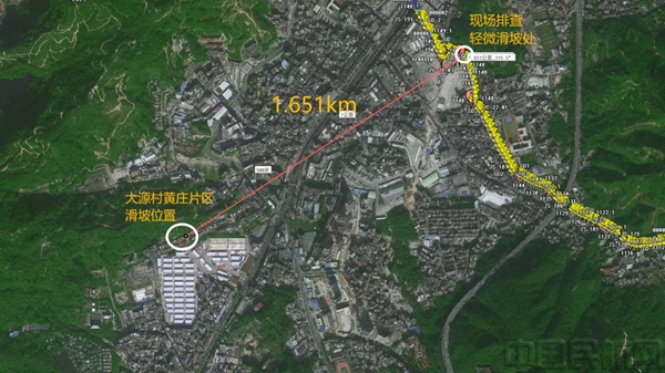 大源村黄庄片区地质滑坡与航油管道位置关系图