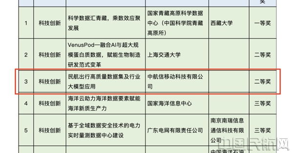 《中国民航报》、中国民航网 记者陈虹莹 报道:近日,由国家数据局联合中央网信办、工业和信息化部等多个部委及机构发起的2025年“数据要素×”大赛全国总决赛圆满收官。中航信移动科技股份有限公司(航旅纵横团队)“民航出行高质量数据集及行业大模型应用”在众多参赛项目中脱颖而出,获得科技创新赛道二等奖,充分展现了其在数据要素赋能产业升级中的领军实力。