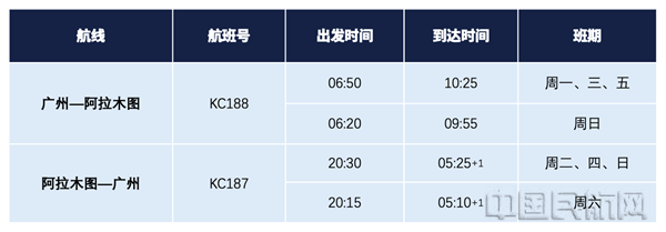 《中国民航报》、中国民航网 记者郑雪 报道:自9月20日起,阿斯塔纳航空广州—阿拉木图航线将每周新增1班,增班后该航线的航班频次将达到每周4班。
