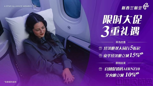《中国民航报》、中国民航网 记者胡夕姮 报道:近日,新西兰航空以“同飞『悦』,『新』起航”为主题在上海举办全新客舱体验日活动,通过沉浸式展陈和互动环节,全面呈现从客舱空间、服务流程、餐食体验到后续游玩的“全旅程体验升级”。恰逢国庆长假将至,新西兰航空同步推出机票“三重礼遇”,出行日期覆盖至2026年6月底,以助力更多中国旅客赴新旅行。