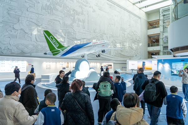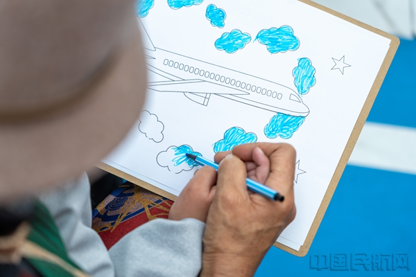 小学员们在C919国产大飞机模型前执笔描绘,让心中飞行的梦想在色彩中绽放,那是他们与众不同的蓝天故事,更是对未来最纯真的期许。