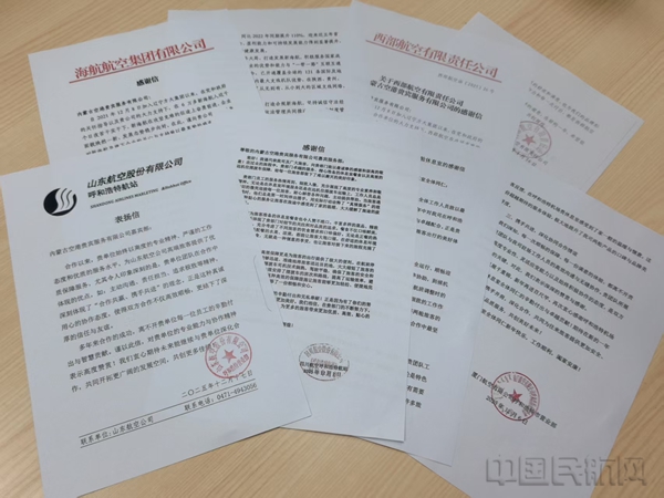 2025年内蒙古空港贵宾服务公司收到东方航空、海南航空、山东航空、西部航空等多家航司发来的感谢信、锦旗以及优秀合作伙伴奖杯共12个。