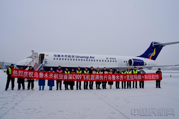 中国民航网 通讯员付飖歆 报道:2025年12月30日上午10时,新海航航空集团旗下乌鲁木齐航空在乌鲁木齐天山国际机场隆重举行仪式,庆祝其首架国产C909飞机正式投入商业运营。随着本次主题为“国翼耀天山·启航新丝路”的首航仪式顺利完成,标志着乌鲁木齐航空首架C909飞机在丝绸之路经济带核心区的常态化运营拉开序幕,开启服务新疆、辐射丝路的全新航程。