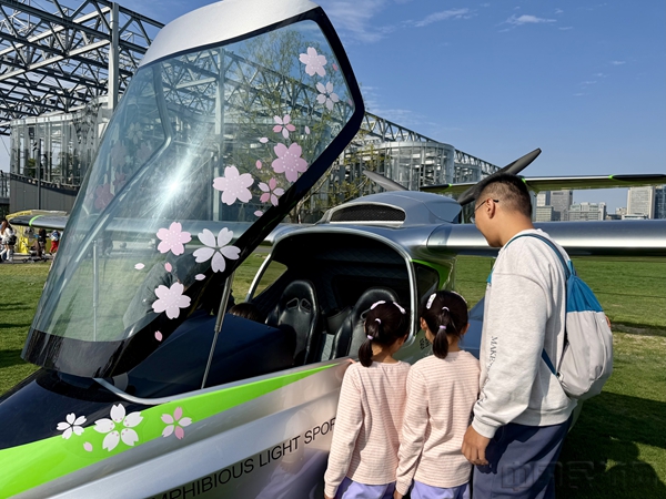 在位于双子山脚下的星光草坪主展区,eVTOL(电动垂直起降飞行器)、水陆两栖飞机、轻型运动飞机等形态各异的航空器一字排开。与一般航展不同,本次嘉年华采用开放式陈列的方式。市民不仅能够近距离触摸机身、观察细节,还可以登机打卡、坐进驾驶舱,与现场技术人员交流飞行原理与应用场景。