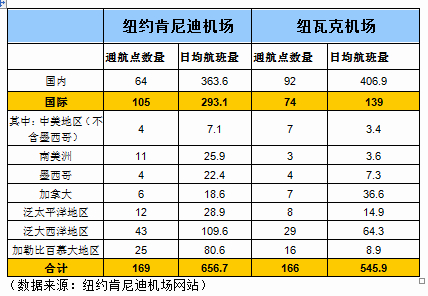 表3:2017年3月肯尼迪、纽瓦克机场通航点及日均航班量情况