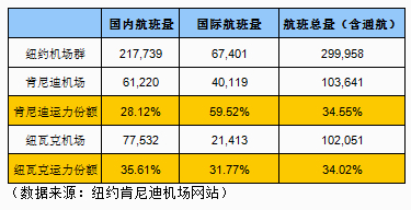 (三)肯尼迪机场国际市场份额超过50%,纽瓦克机场国际市场份额超过30%