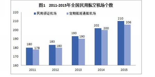 2015年,我国境内民用航空(颁证)机场共有210个(不含香港、澳门和台湾地区,下同),其中定期航班通航机场206个,定期航班通航城市204个。