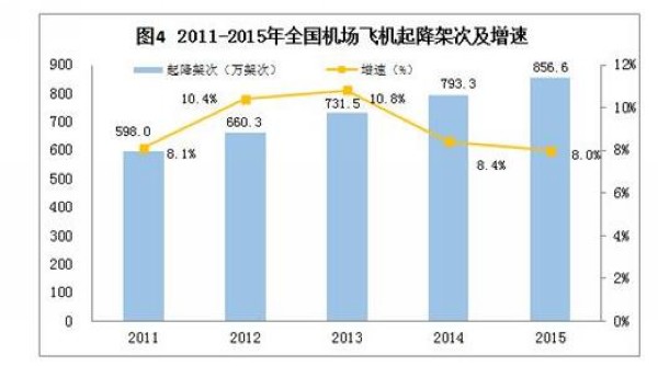 飞机起降856.6万架次,比上年增长8.0%。其中:运输架次为729.4万架次,比上年增长6.9%。起降架次中:国内航线787.3万架次,比上年增长7.1%(其中内地至香港、澳门和台湾地区航线为20.9万架次,比上年增长1.6%);国际航线69.3万架次,比上年增长18.9%。