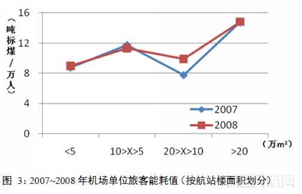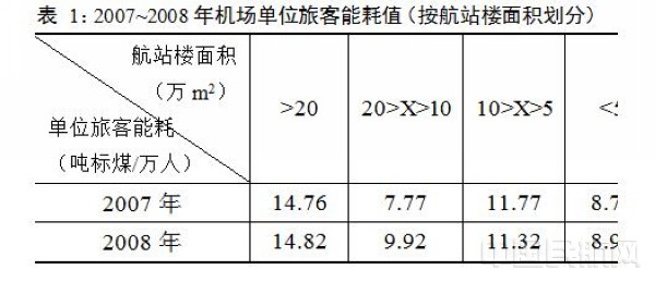 航站楼是机场最主要的建筑物,而且是为旅客服务的最主要场所,舒适度有较高的要求,自然所需能耗就较大。但其单位面积能耗或者单位旅客能耗指标却未必是与航站楼面积同比变化。