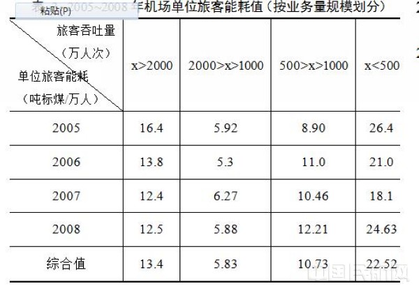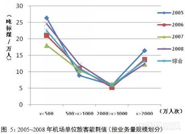 通过三次较大范围的国内机场调研,我们得到了关于机场能耗(含耗电量、耗煤量、耗油量、耗气量等)的相关数据。本文将以30个机场2005~2008年数据为依据,对机场能耗指标影响因子进行逐一分析。