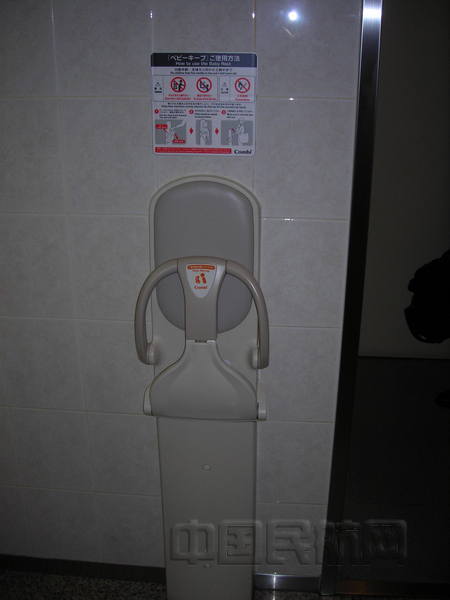 成田机场航站楼卫生间里方便的折叠小孩坐椅