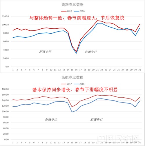 民航春运整体趋势相对平缓,即使春节期间的下滑幅度也较小。