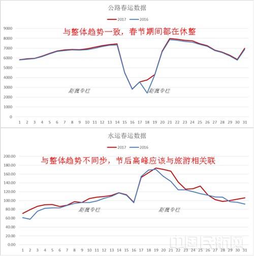 节前运量平缓增长,节后自初六长假结束运量开始下滑,正月十五到节后低谷,正月十六又开始上升。