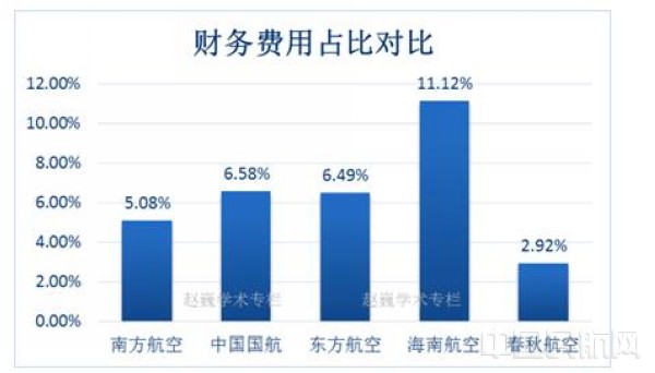 海南航空财务费用占营业收入11.12%,大约是三大航的两倍,春秋的四倍。