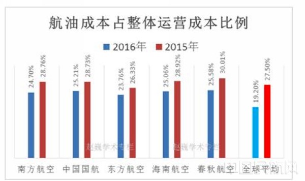中国航空公司航油成本占比连续两年高于全球平均水平。