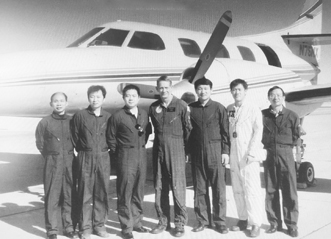 2002年民航局派往美国国家试飞员学院进行学习培训的人员,左起依次为钱惠德、王志丹、赵鹏、格莱格·路易斯、陈志远、朱雪峰、周成刚。